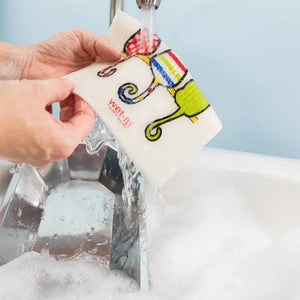 Our wonderful Swedish super absorbent cloths far outperform regular cotton rags, paper towels and sponges because they are so light and absorbent. When moistened, they soak up any mess and leave a squeaky-clean surface behind. They are so versatile! Wash dishes, wipe your counter, polish chrome, dust and even shine your mirror with these cloths and you will never want to go back to using cotton rags, paper towels or sponges. They can be sprayed with a bleachy cleaner every so often to make them like new! -6.75" x 8" -Top rack dishwasher