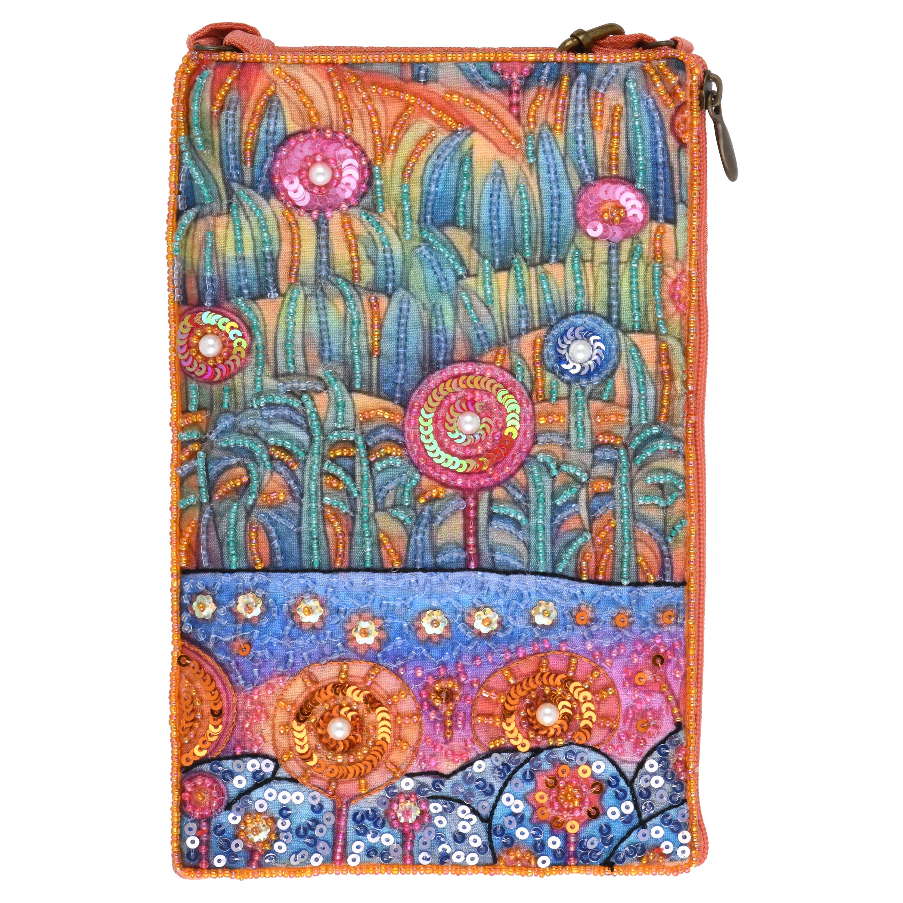Hand beaded by artisans in India, this versatile bag can be used as a crossbody bag, wristlet, or unclipped by the strap to revamp into a purse on the go (just attach to belt loop or larger tote). Includes a convenient zipper enclosure on the side for easy access to cards or a cellphone. Each bag contains a 54" crossbody strap that can be tucked away when not in use.