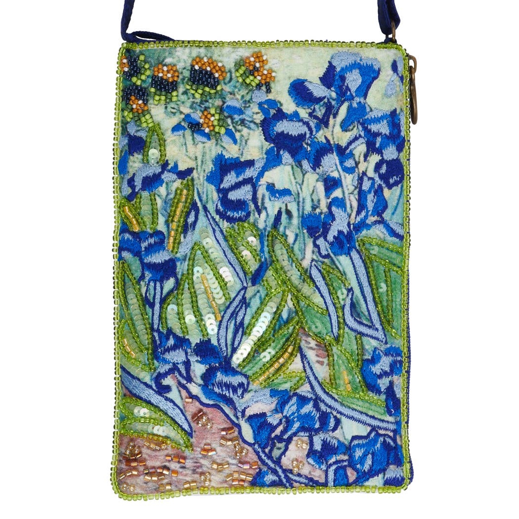 Van Gogh's beautiful Blue Irises adorn this Club Bag in a mix of both beading and embroidery.