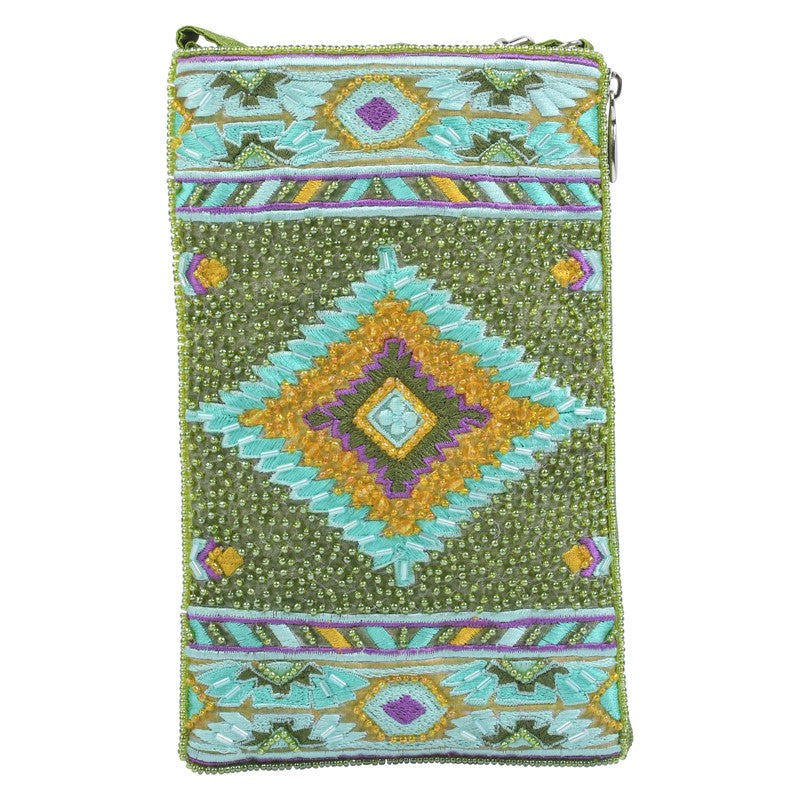 The Club Bag holds your essentials in style! Hand beaded by artisans in India, this versatile smart phone bag can be worn cross body or as a wristlet. Includes 54" cross body strap that can tuck inside when not in use, a short strap that unsnaps so the bag can be attached to a larger bag or belt, and a separate, secure side zip pocket for cash and credit cards.