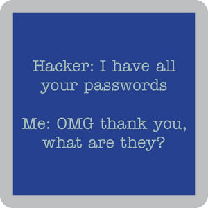 Coasters are 4”x 4” resin with cork backing and round corners. Made in the USA.
