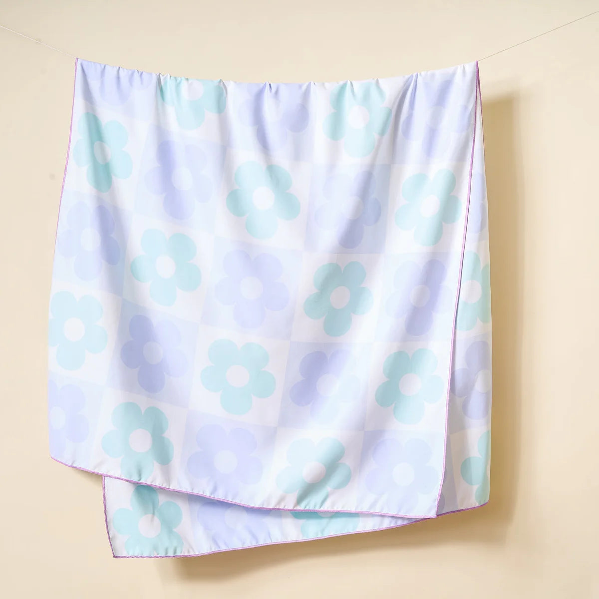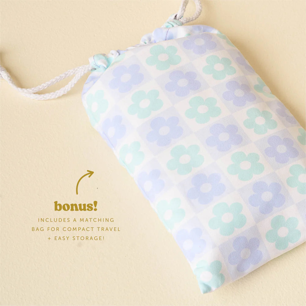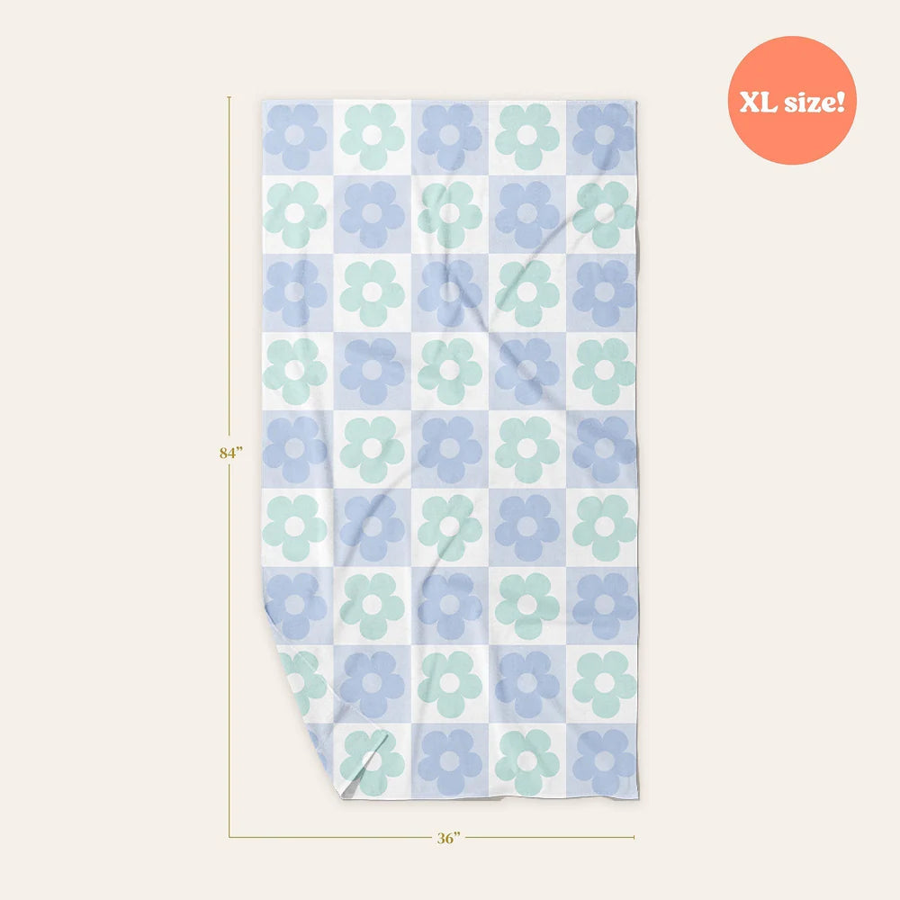 Flower Check Blue Quick-Dry Beach Towel