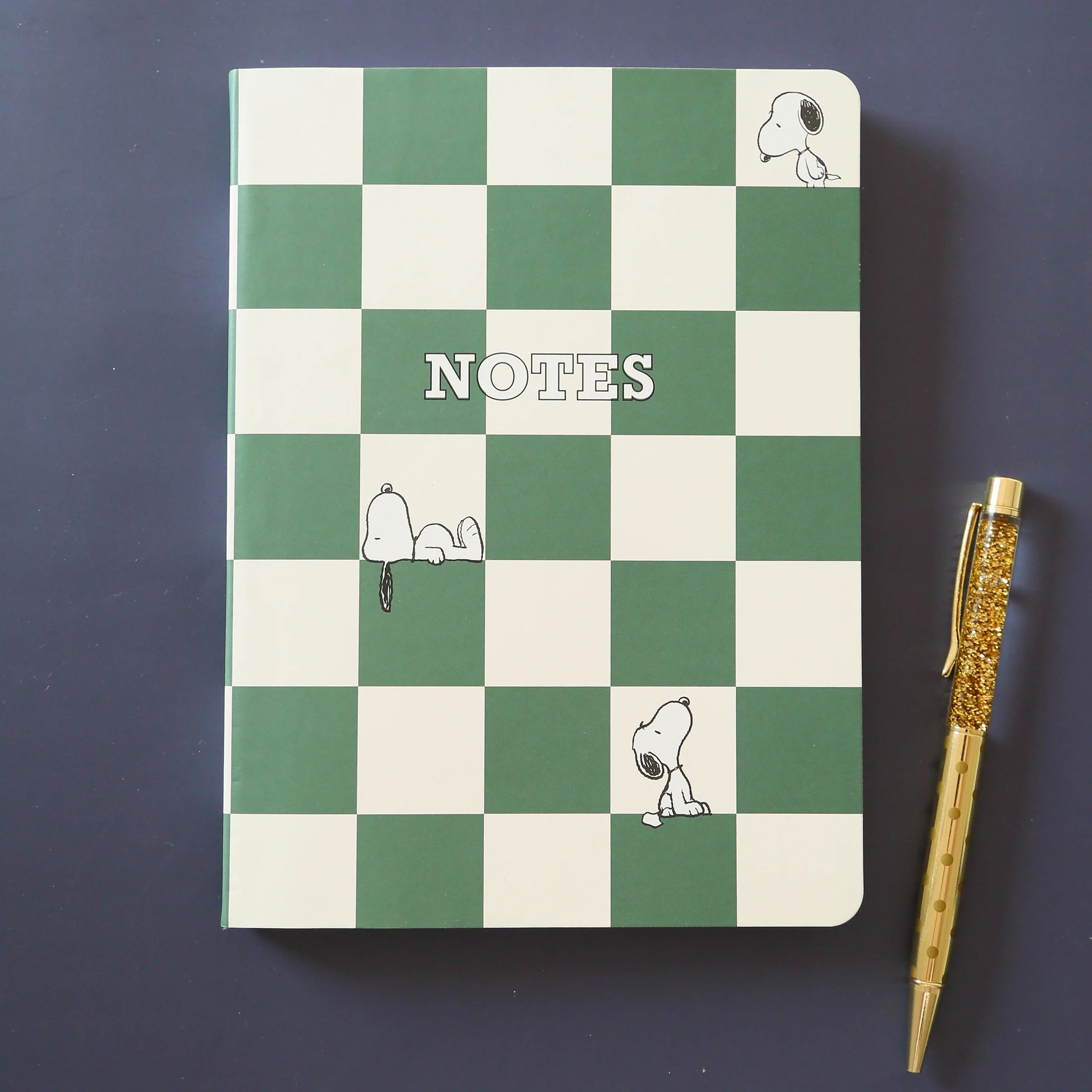 Green Checkered Peanuts 6 x 8 Vegan Leather Journal