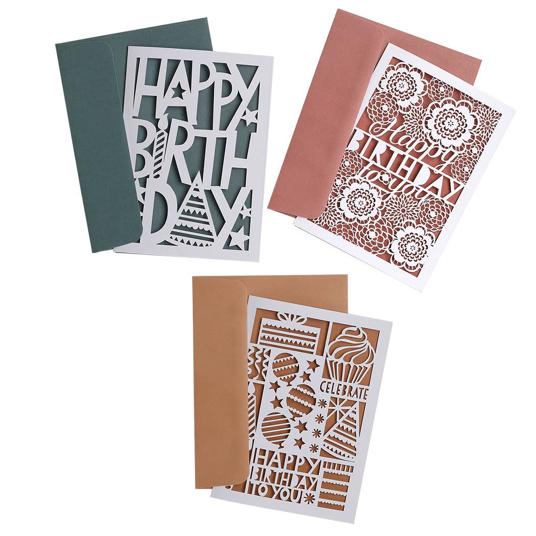 Birthday Assortment set featuring 3 beautiful laser-cut designs.