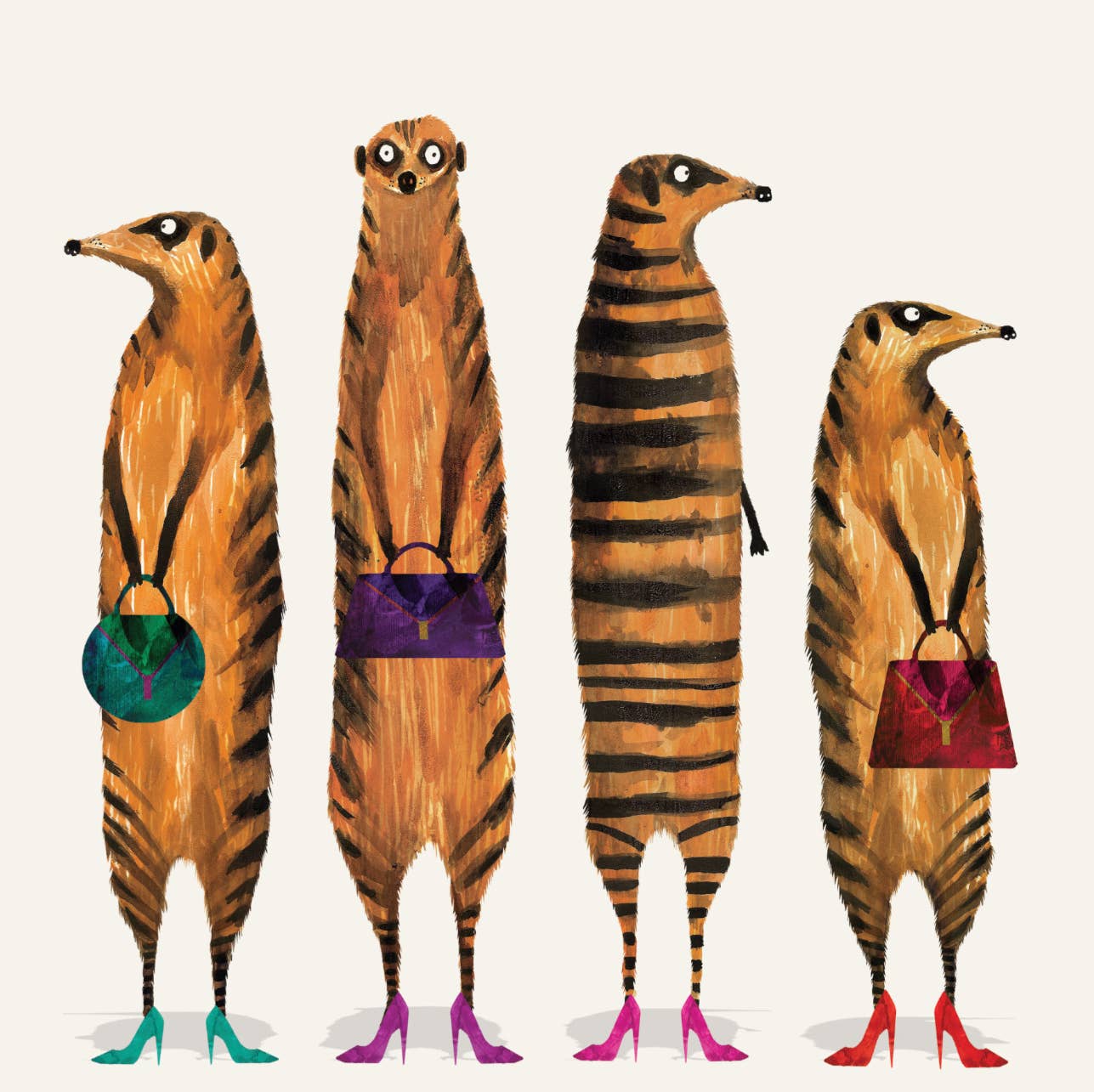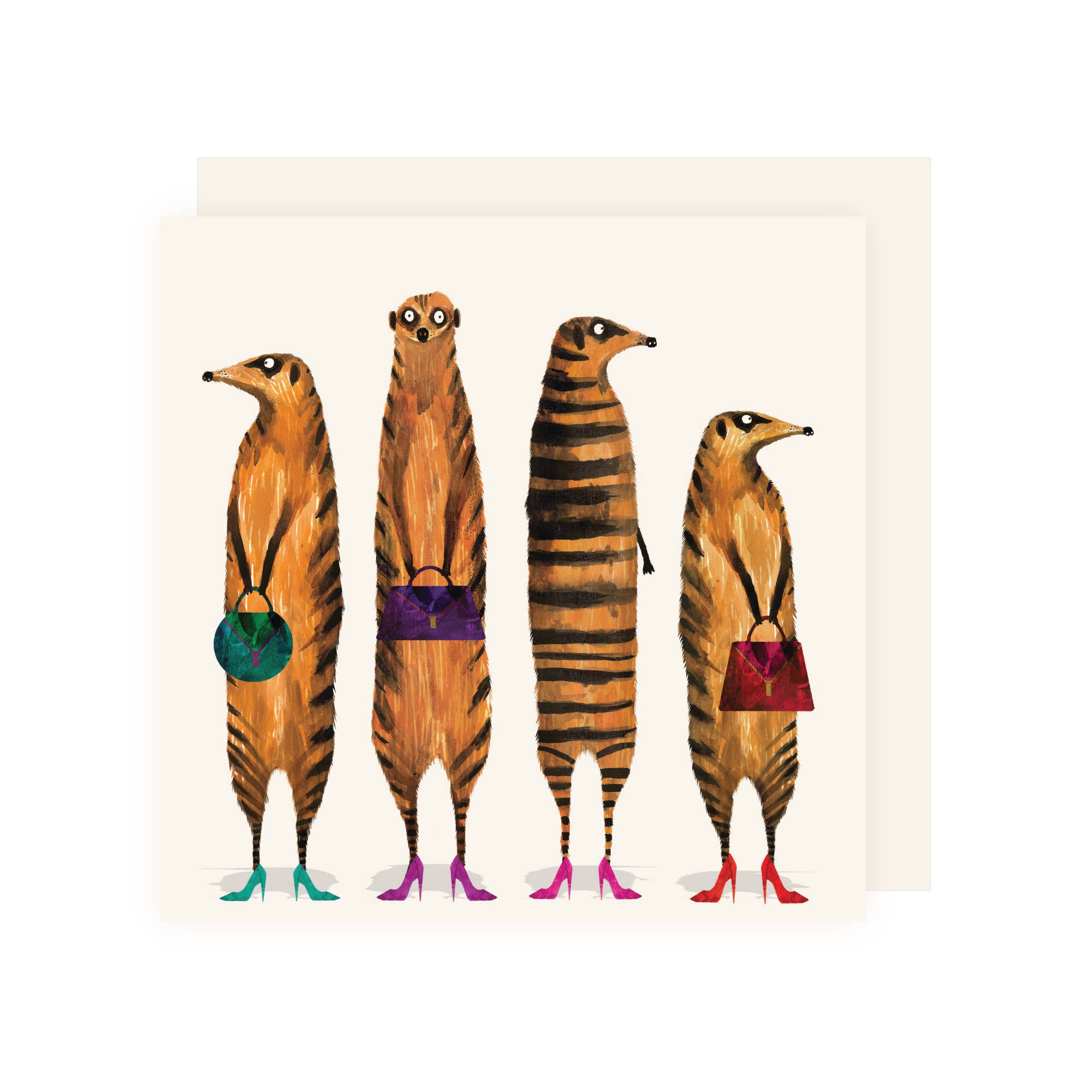 Meerkat Ladies With Handbags and High Heels Greeting Card