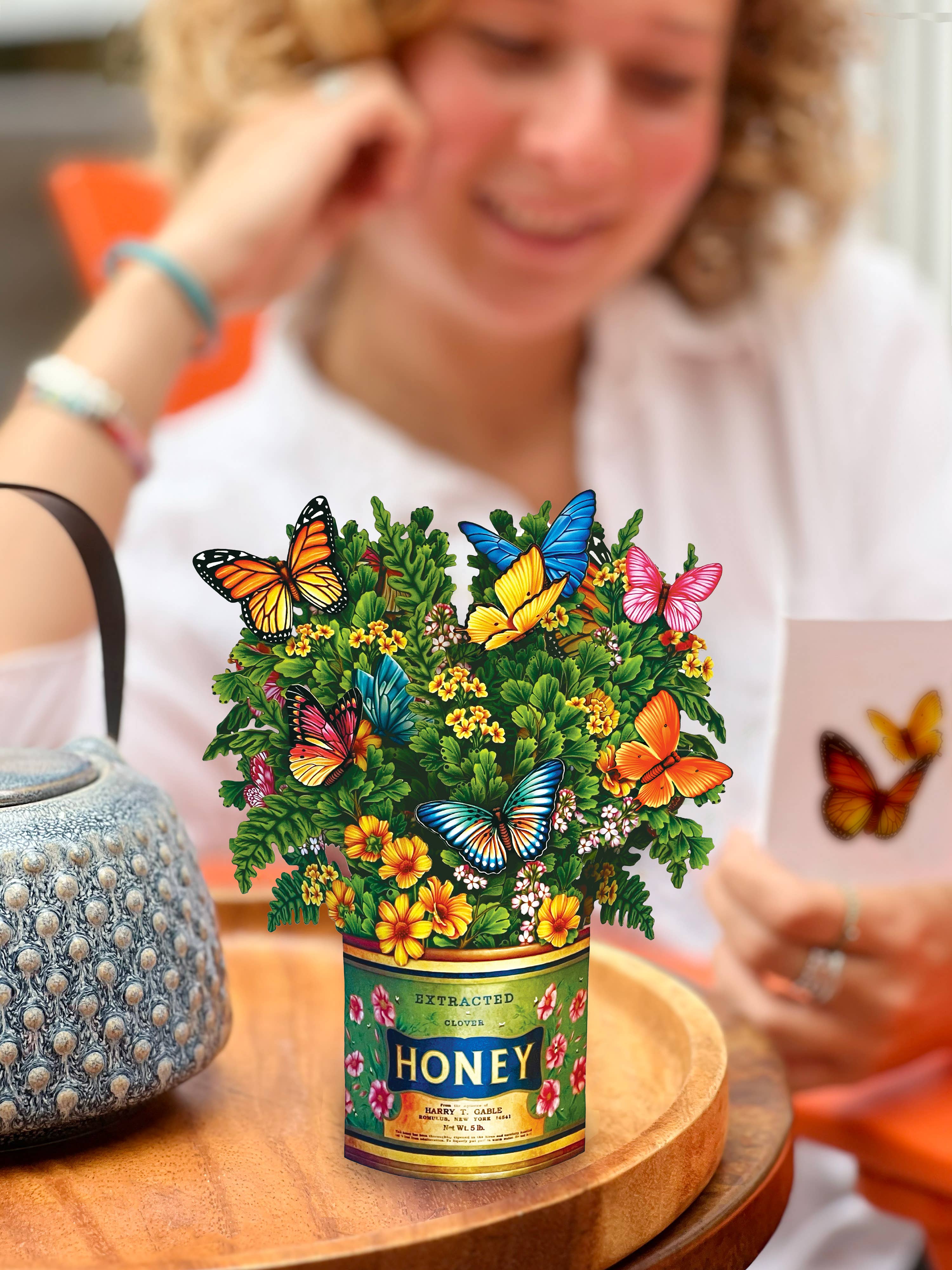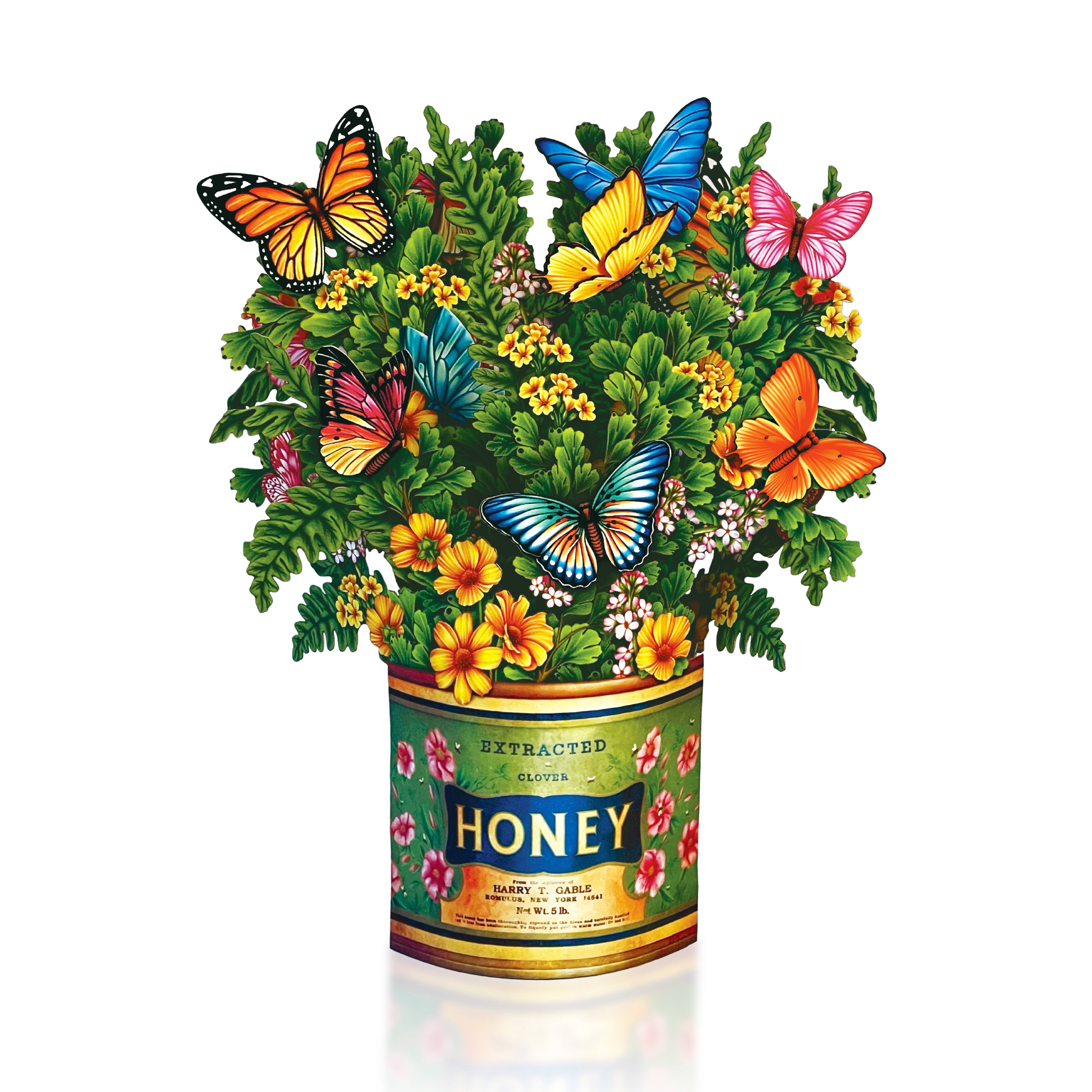 Butterflies & Buttercups - Includes: pop up bouquet, matching note card, vibrant mailing envelope. With a kaleidoscope of butterfly varieties fluttering through lush ferns and sweet buttercups, the Mini Butterflies and Buttercups Bouquet energizes every space in small bursts of freshness. The perfect gift to make hearts flutter, this mini bouquet will have you floating like a butterfly all year long.