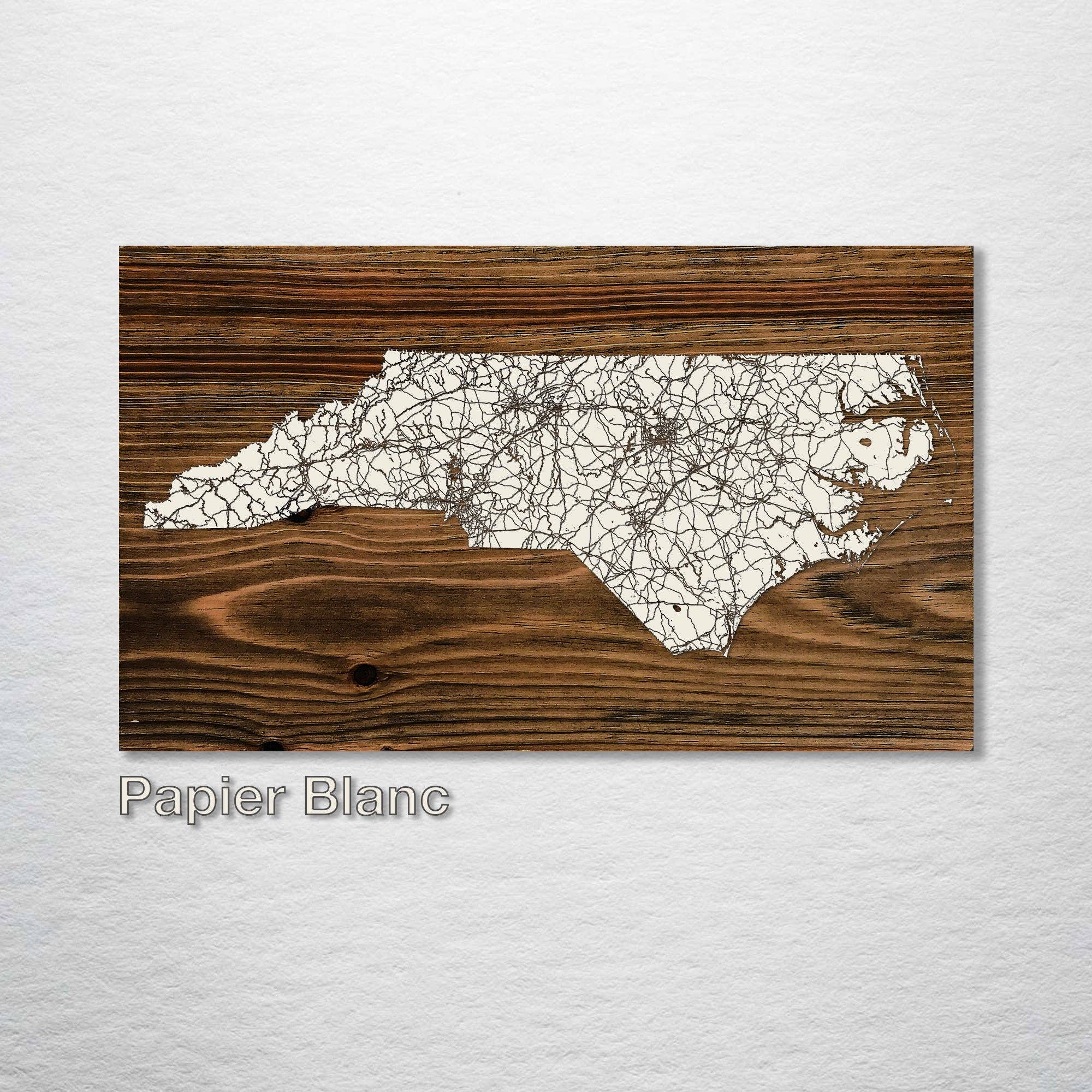This is an Isolated map of the state of North Carolina designed by Fire & Pine artists. Every Fire & Pine piece is made 100% in South Carolina. Due to the nature of wood and our process, every piece will be unique in wood tone and grain texture.