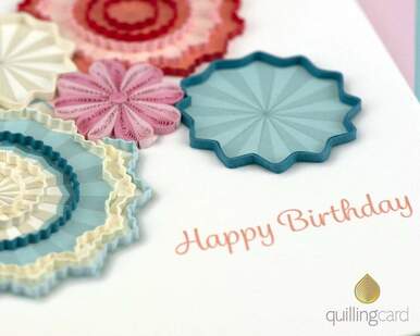 Tell your friends and loved ones you're their biggest fan by sending our Quilled Birthday Paper Fans card! This classy design features several fans in cool colors of peach, pink and aqua and reads Happy Birthday on the front.