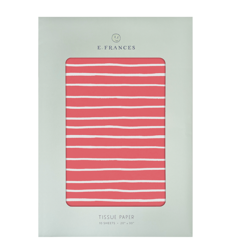 10 sheets of tissue paper per package. Made from 100% recycled paper and it's 100% recyclable. Mix and match with our coordinating gift bags (sold separately). Yay for plastic packaging!