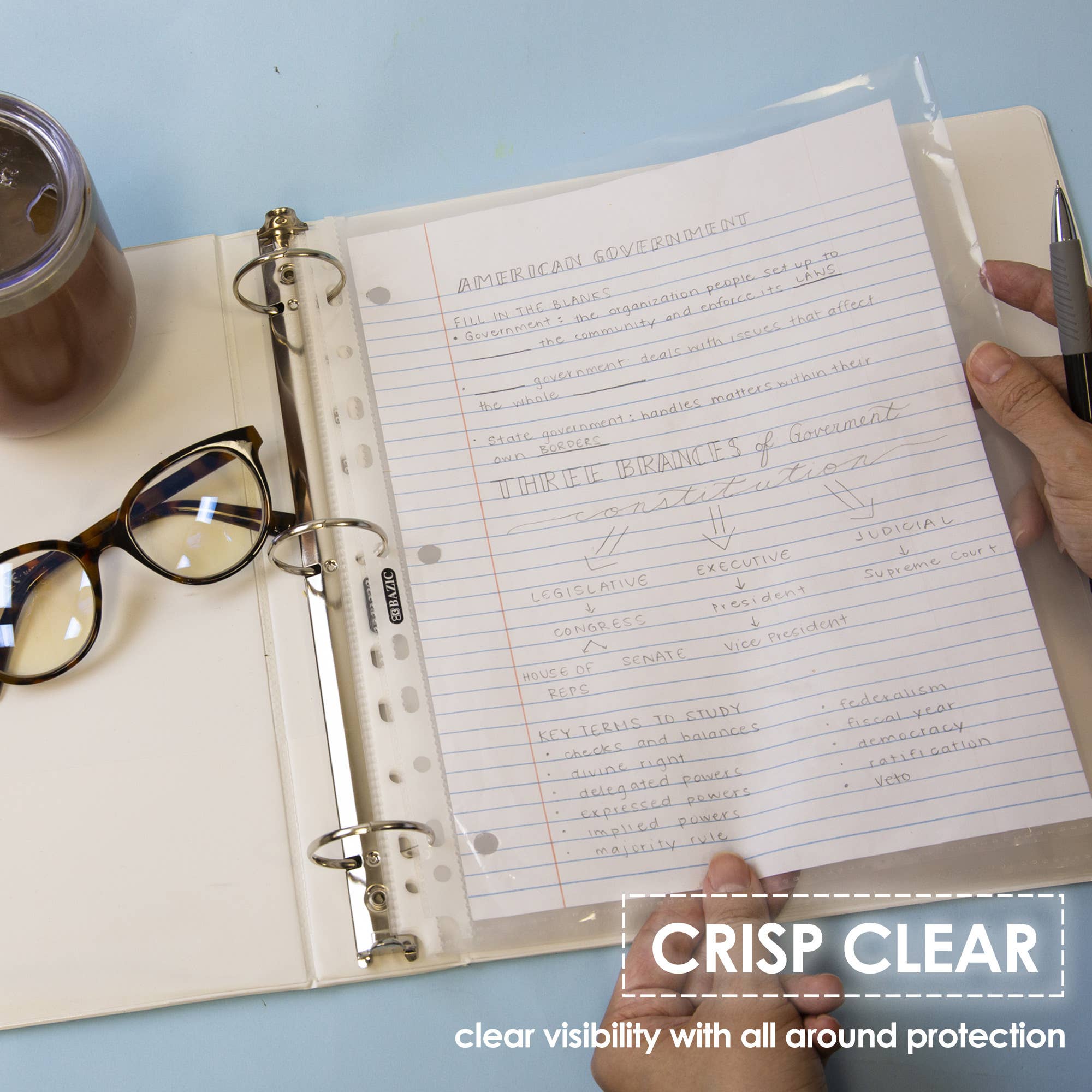 ➤ ECONOMIC DESIGN. Holds 11" x 8.5" paper sheet. Thickness: 0.035mm. Feature 10 pre-punched hole to fits in various types of ring binders. ➤ ARCHIVE SAFE. Documents can be inserted from the top allows quick adding or removing. Clear design offers complete transparency. Perfect for showcasing and makes presentations appear bold and bright. ➤ MULTI USE. Non-stick and clear poly sheet protectors protects important portfolio, projects, receipt, school or class work, or any business need. Archival quality to provide long lasting protection. ➤ SAFE & ACID-FREE. Great for organizing reports, manuals, medical records, financial document, presentations. Available in bulk school and office supplies to save you costs. ➤ KEEP DESK NEAT. Made of PVC-free polypropylene. Waterproof plastic page protector preserves papers from wear and tear. Provides for you a clean and professional look.
