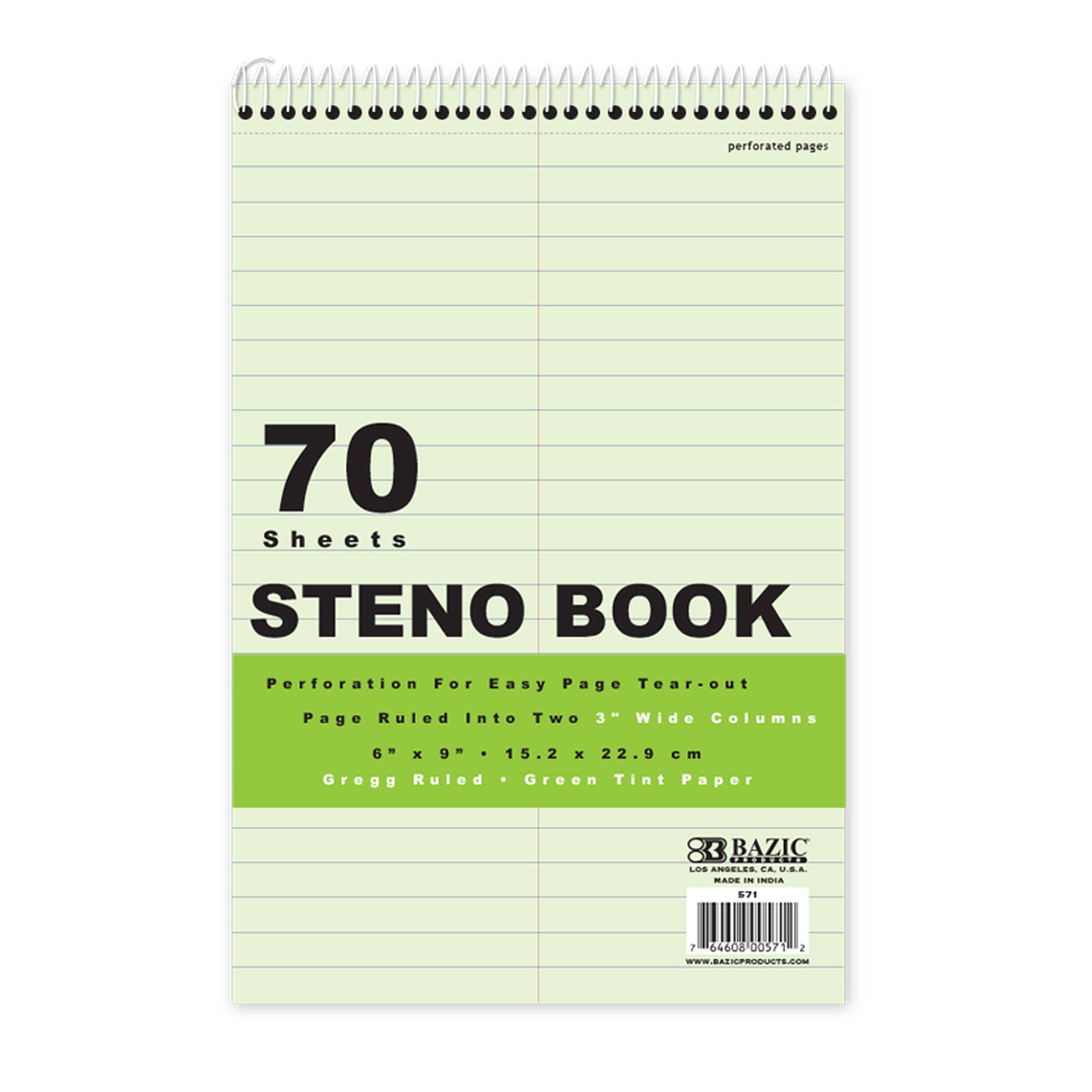 Steno Book Ruled Green Tint 6" X 9" 70 pages