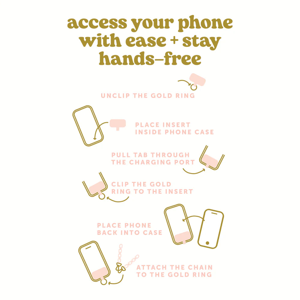 Get ahead of the trend with our Hold the Phone Crossbody Chain! This fashionable accessory allows you to access your phone on the go, making your life easier and more stylish. Never miss a call or text again!