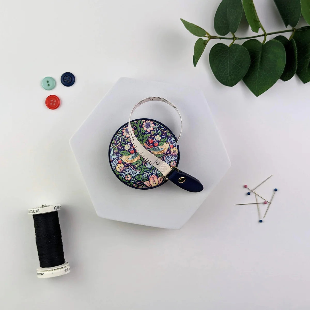 Bring some art to your craft room, sewing kit, or with you on the go! These practical yet pretty measuring tapes are sure to bring a smile to any crafter or handywoman every time you use them! Each one features a sturdy pull tab, easy push retractable button, double sided 60 inch/150 centimeter tape, vegan leather, and fabulous designs. Perfect for you or for your favorite DIYer!